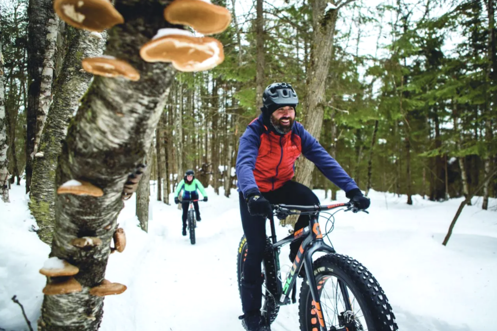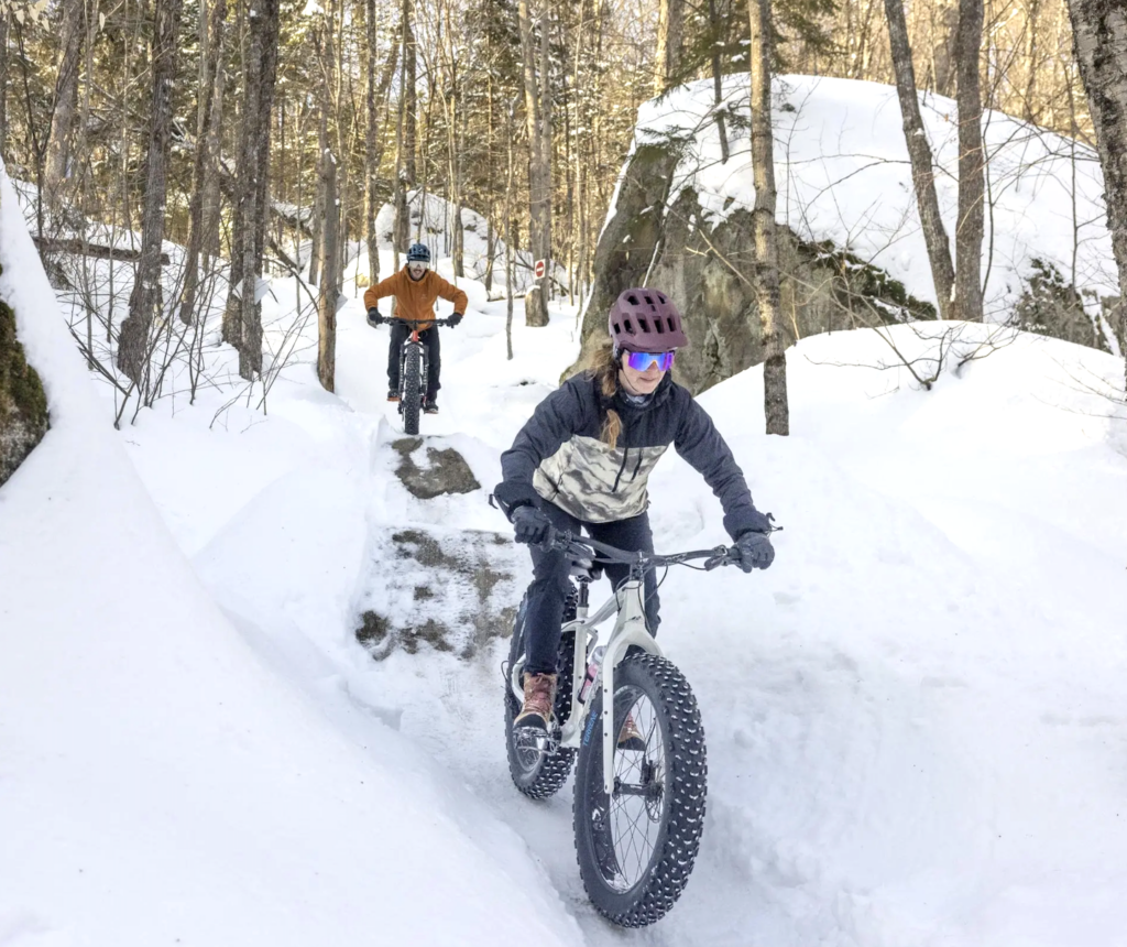 Fat biking is part of the immersive winter experience offered at the Vallée Bras-du-Nord, with nearly 15 km of groomed trails in the Shannahan sector. A 4.5-km loop is designated for fat bike jöring, an option reserved for experienced riders and their canine companions.
