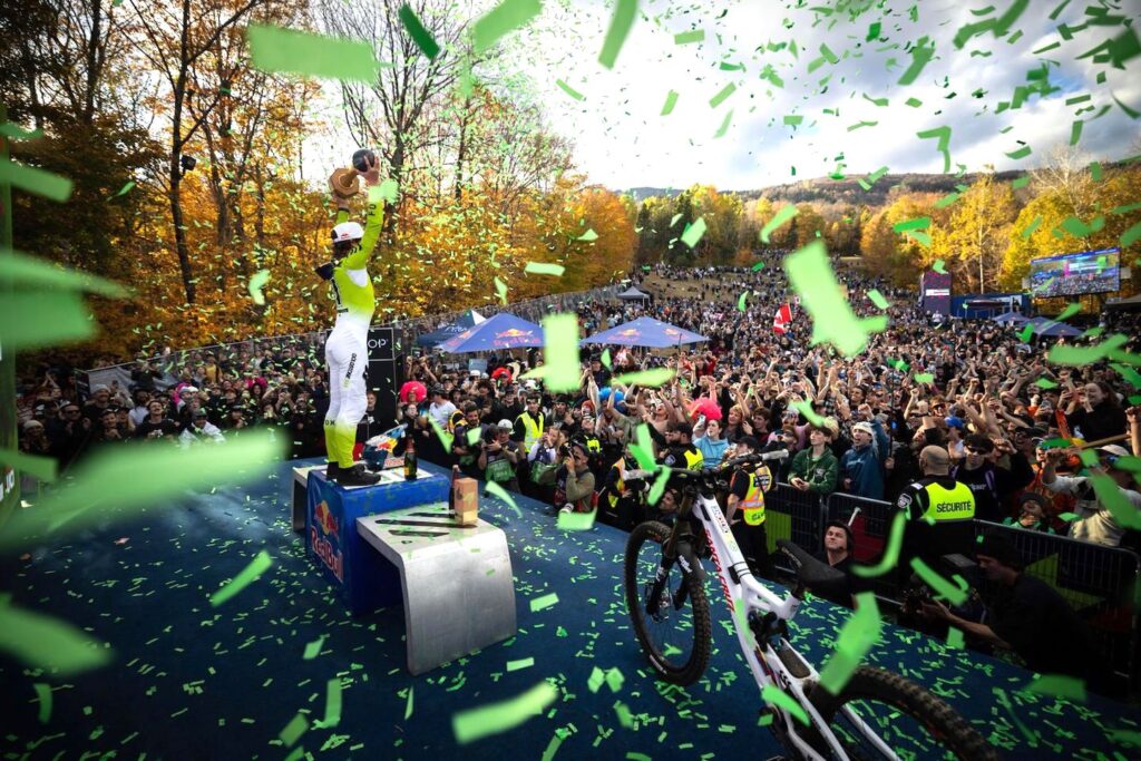 October 12, 2025 - (Mont-Sainte-Anne, Que.) Jackson Goldstone (Santa Cruz Syndicate) clinched the Men Elite UCI Downhill World Cup overall title in the most dramatic of circumstances in his home country at Mont-Sainte-Anne (Canada), presented by Events.com. Meanwhile, Marine Cabirou (Canyon CLLCTV Factory Team) took her 11th career UCI World Cup victory following an enthralling end to the women’s Elite category.