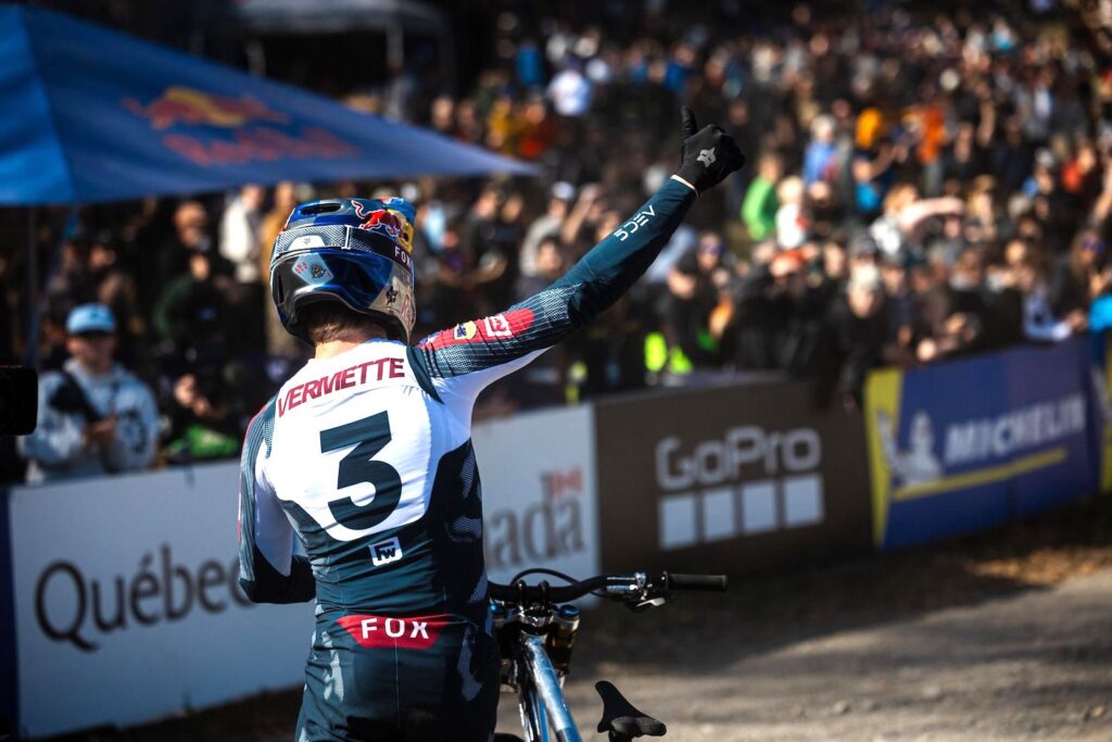 The women’s Elite event was equally as dramatic after the top three riders overall all had issues on the Mont-Sainte-Anne (Canada) course. Valentina Höll (YT Mob) suffered a flat tyre in the finals, Gracey Hemstreet (Norco Race Division) crashed out, and Tahnée Seagrave (Orbea/FMD Racing) pulled out of qualifying with a back injury. Cabirou had no such problems narrowly beating Nina Hoffmann (Santa Cruz Syndicate) into second, while fastest qualifier Myriam Nicole (Commencal/Muc-Off by Riding Addiction) finished third.