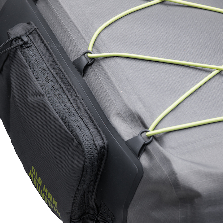 • Bungee cord on top for quick stashing of clothing layers or wet items that need to dry